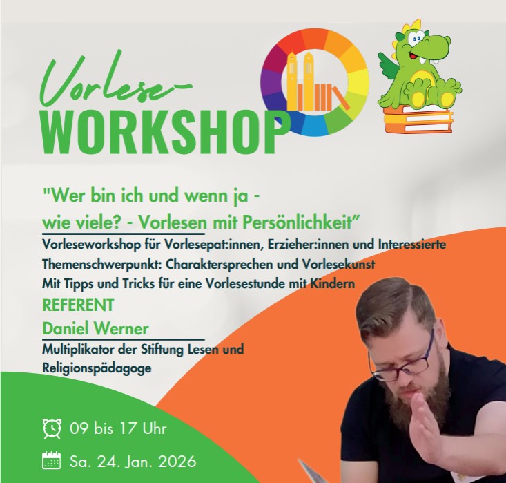Unser Referent ist der Leiter unserer Vorleseinitiative und Multiplikator der Stiftung Lesen - Daniel Werner. Dieser Workshop richtet sich an Büchereimitarbeitende sowie Personal in Kita und Schule. Themenschwerpunkt ist die generelle Kunst des Vorlesens, Charaktersprechen und das gestalten einer Vorleseaktion für Kinder. Der Workshop findet von 9-16 Uhr im Alten Pfarrhof in Hiltrup statt. Anmeldungen […]